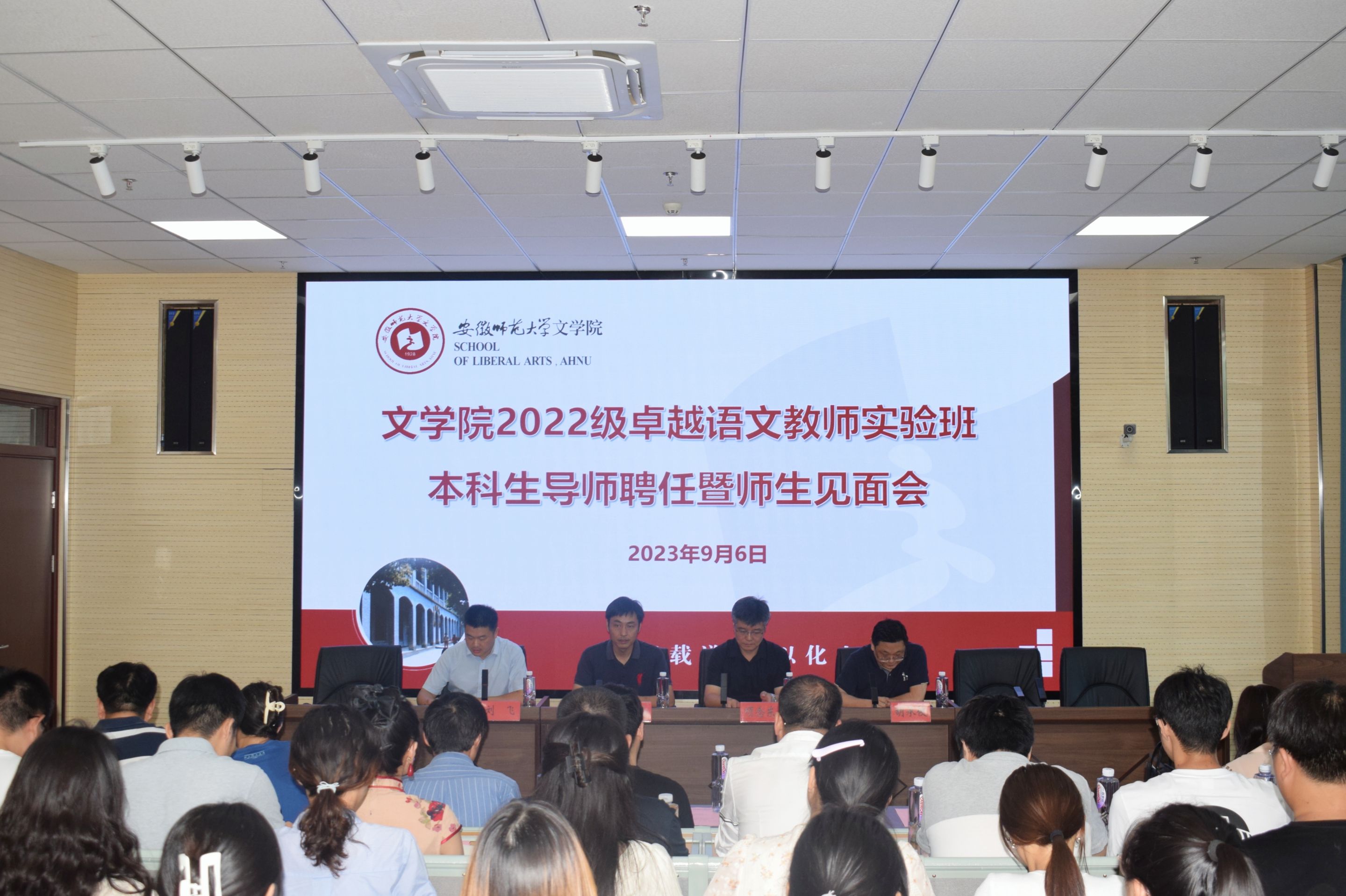 为深入推进学校两大振兴行动计划,落细落实本科生导师制,进一步提升卓越语文教师实验班的人才培养质量,着力打造安徽师范大学专属语文学科金牌师范生。9月6日下午,文学院召开2022级卓越语文教师实验班本科生导师聘任暨师生见面会。文学院院长项念东、党委副书记(主持党委工作)戴和圣、汉语言文学(师范)专业主任胡承佼和全体受聘的本科生导师应邀出席会议。会议由院党委副书记刘飞主持,2022级卓越语文教师实验班全体同学参与会议。